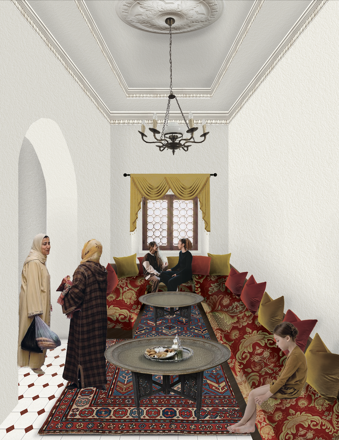 This thesis explores the role of Algerian domesticity in the creation of culturally, socially, and environmentally resonant spaces. By critically engaging with the legacy of French colonial housing projects, it aims to confront colonial design practices that often disregarded the cultural and social needs of Algerian domestic life. The design research seeks to integrate indigenous architectural principles, ensuring that the built environment accommodates both historical practices and contemporary needs. Central to this approach is the creation of sustainable living environments that prioritize social well-being and cultural continuity. The project challenges the modernist emphasis on efficiency, advocating instead for housing that fosters community interaction, supports the diverse roles within Algerian families, and promotes a sense of belonging. Ultimately, this project strives to offer an architecture that not only resists colonial legacies but also actively contributes to the reintegration of cultural heritage into modern Algerian life.